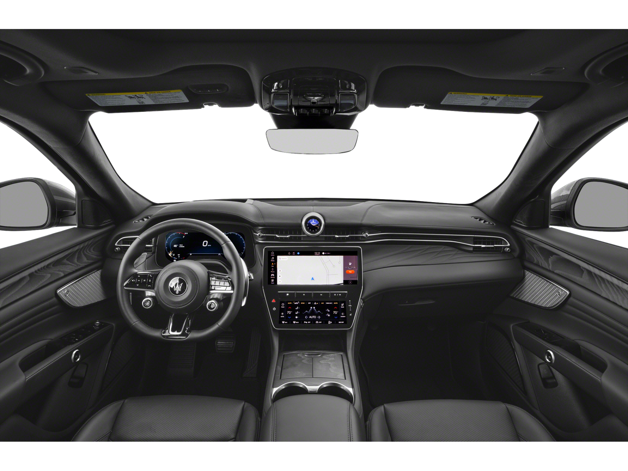 - Radio: Sonus Faber 860 Watts Premium Audio System -inc: 14 speakers w/subwoofer, Maserati Intelligent Assistant (MIA), 12.3" upper touchscreen, 8.8" lower touchscreen, navigation, HD radio, SiriusXM radio w/1-year trial subscription, wired and wireless Apple CarPlay and Android Auto, Maserati connected services w/trial subscriptions, Alexa in-vehicle voice assistant and eCall and bCall w/trial subscriptions
